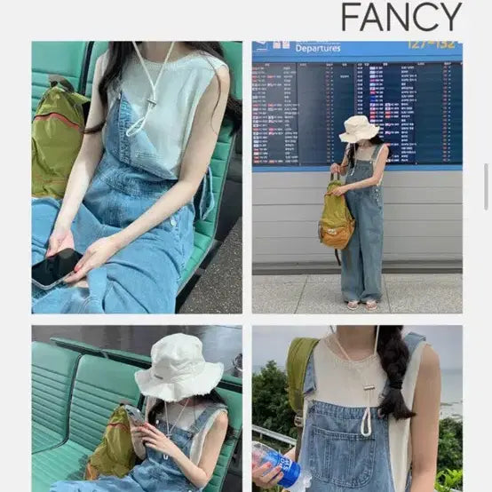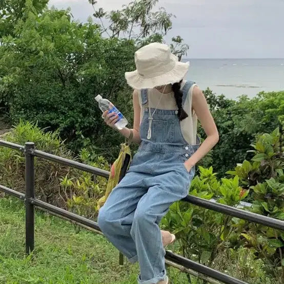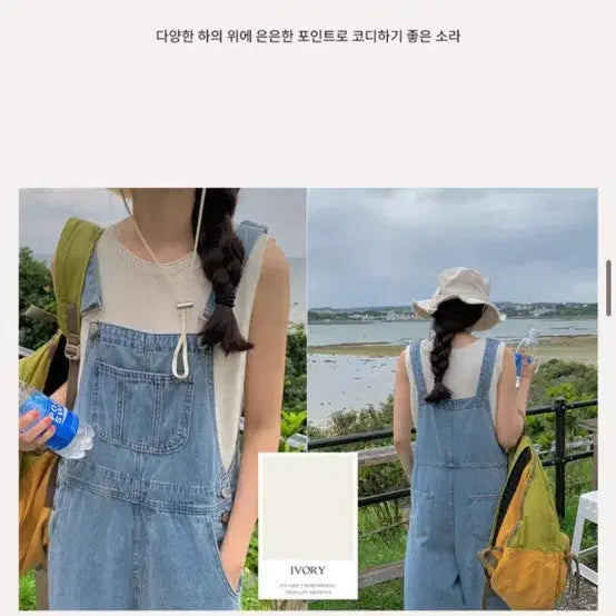 중청 데님 오버롤과 아이보리 나시 세트