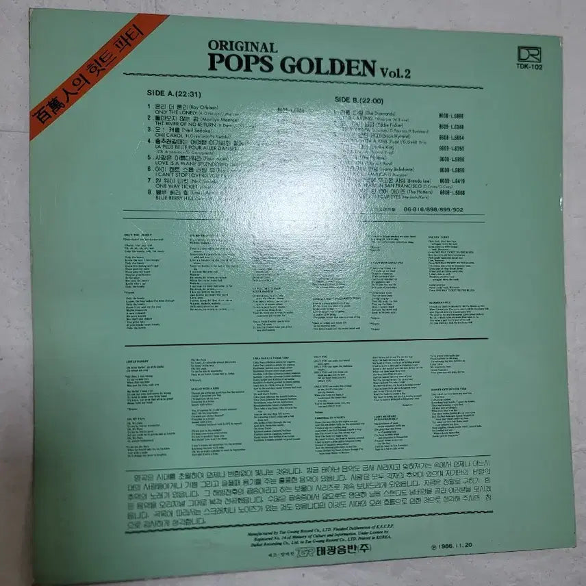 [BUNJANG] POPS GOLDEN 2nd LP / POPS GOLDEN 2집 LP