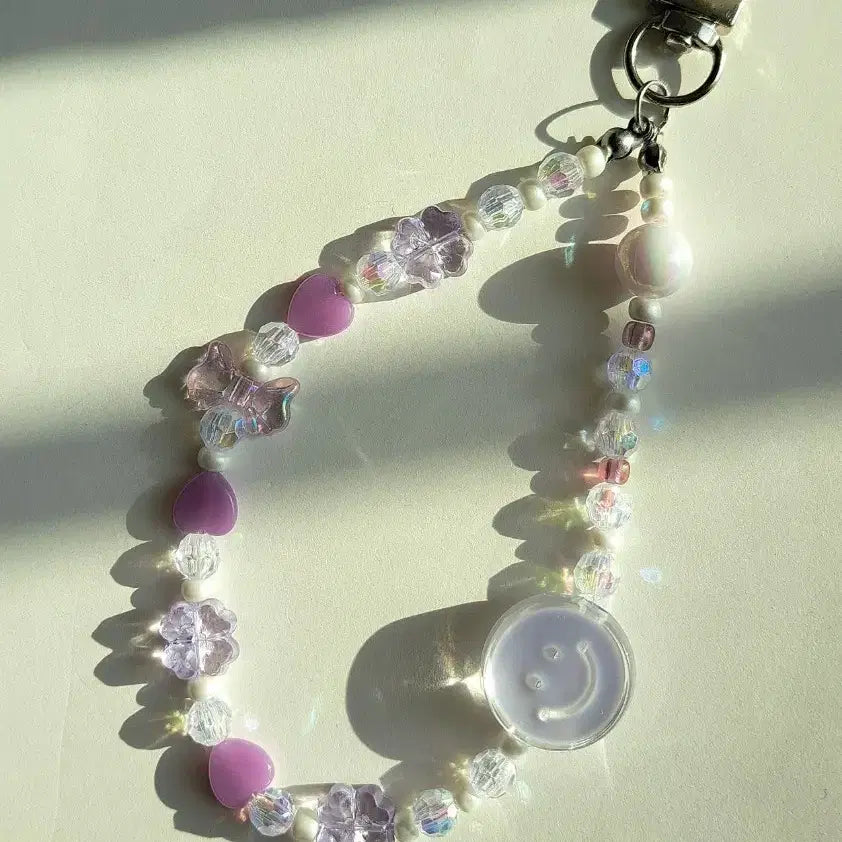 [BUNJANG] Purple Heart Smile Bead Keyring / 보라색 하트 스마일 비즈 키링