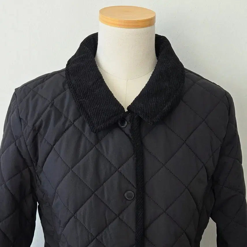 Slim quilted jacket with a corduroy collar.