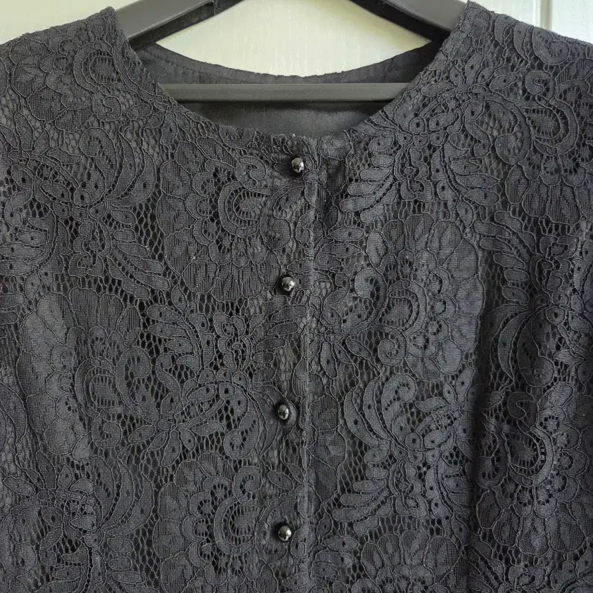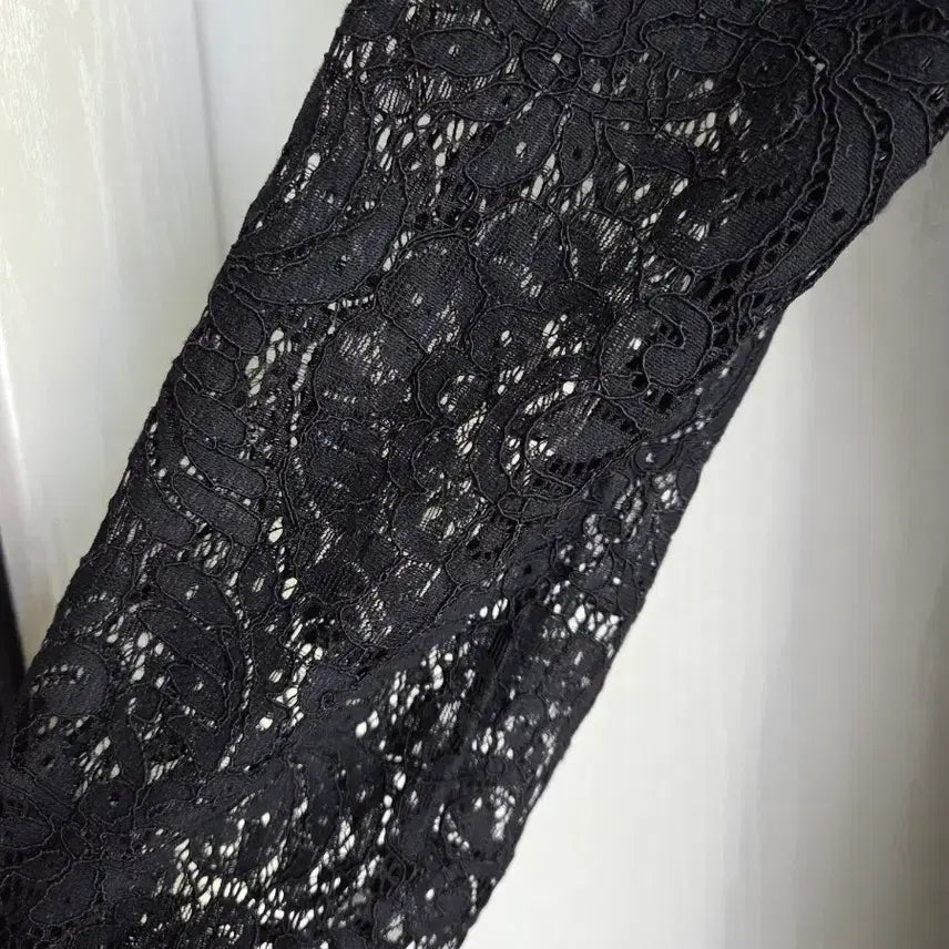 전체 레이스 디자인의 블랙 롱 원피스로 우아해요