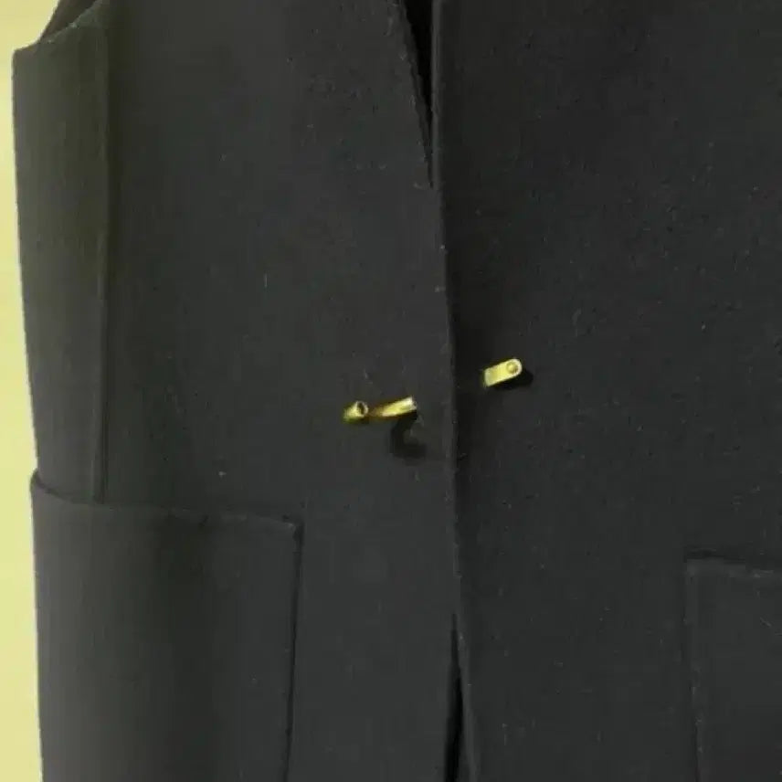 It's a thick, wool vest with a clip closure at the front. There's some slight pilling visible up close.