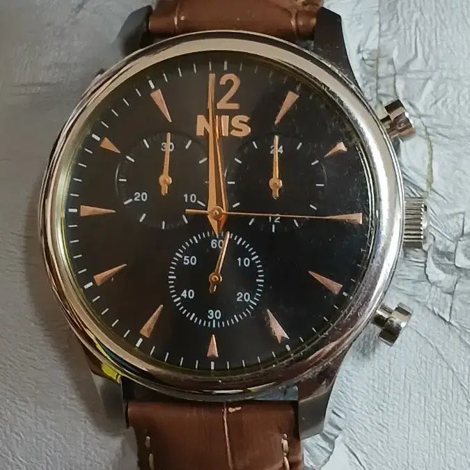 A black chronograph watch presented by the National Intelligence Service.