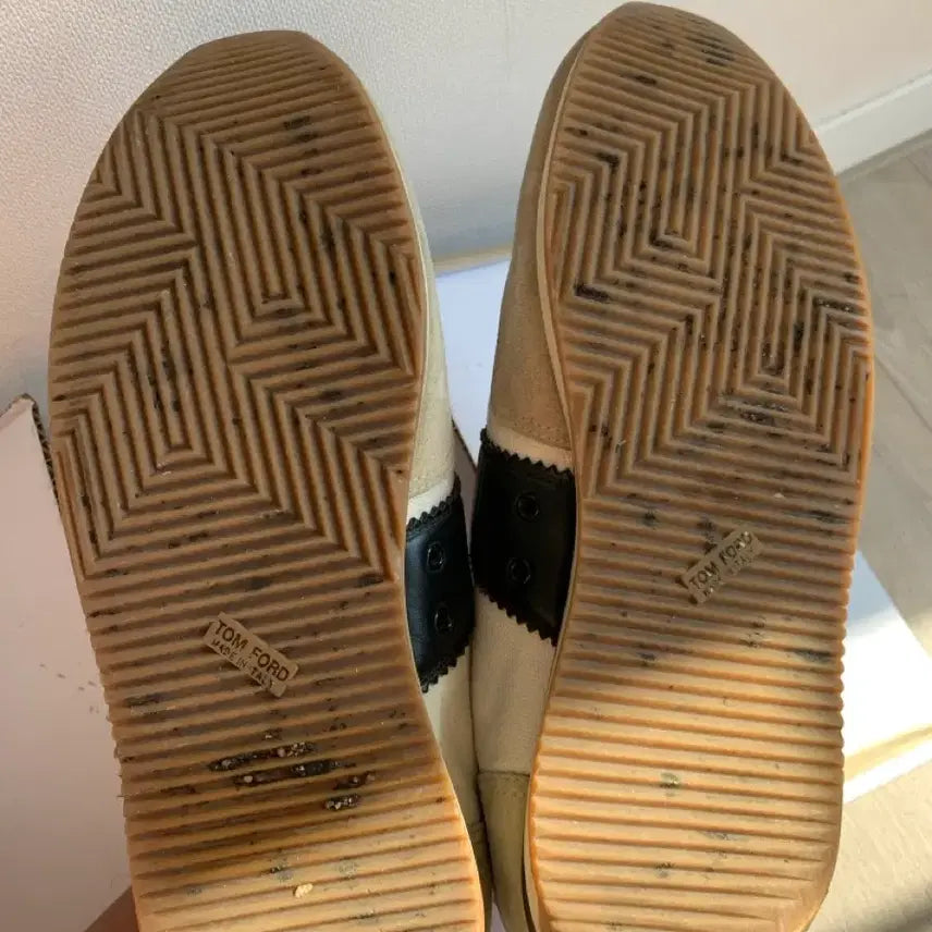 These Tom Ford Oxford sneakers show some wear on the soles due to their age, but overall, they are in good condition. Priced affordably, considering the need for potential cleaning.