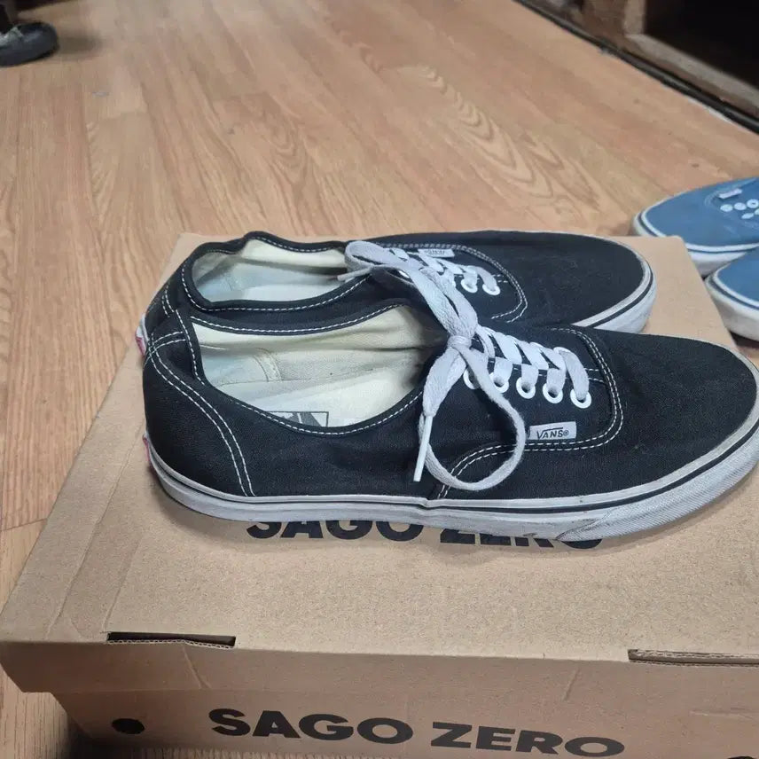 These are Vans Authentic Black sneakers. They're perfect for casual wear. They haven't been worn much, so they're generally clean. There's a minor flaw on the inside of the heel, but it's not a major issue. If you re-glue them, they'll look great. All in all, this is a great deal. If you have any questions, please proceed with secure payment immediately!