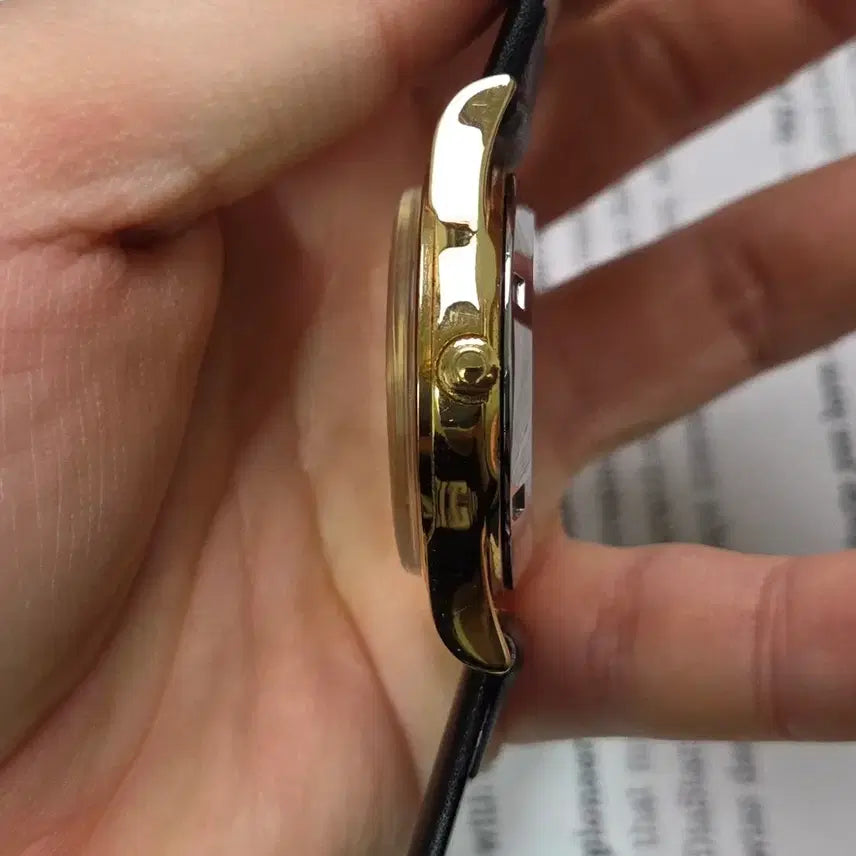 This Omega dress watch model, considered the quintessential dress watch among vintage Omega watches released in the past, is equipped with an Omega movement. A close look at the dial reveals a beautiful vertical graining, and the overall condition is excellent. Even the Omega engraving on the back is very clear, and the Omega logo engraved in the center of the glass is still intact. Because it's no longer available, the Genève line is particularly endearing and collectible.