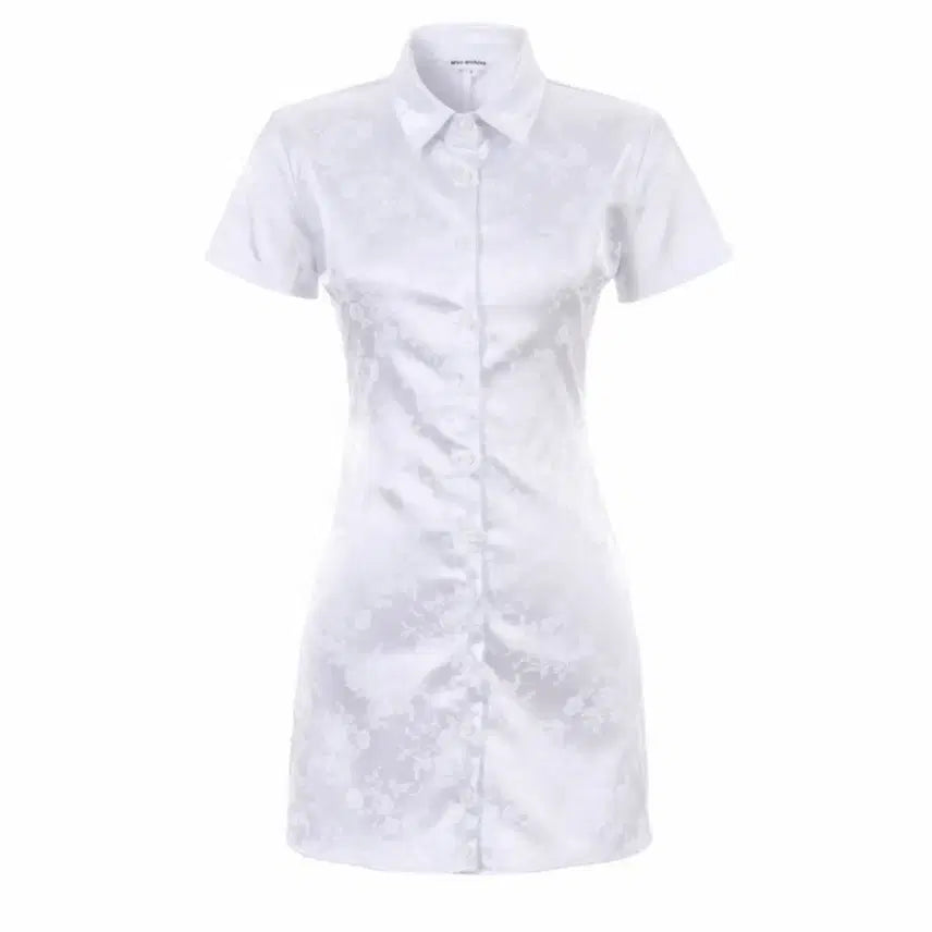 [BUNJANG] WSC Archive White Jacquard Shirt Mini Dress / [free/착샷O] WSC 아카이브 화이트 자카드 셔츠 반팔 미니 원피스