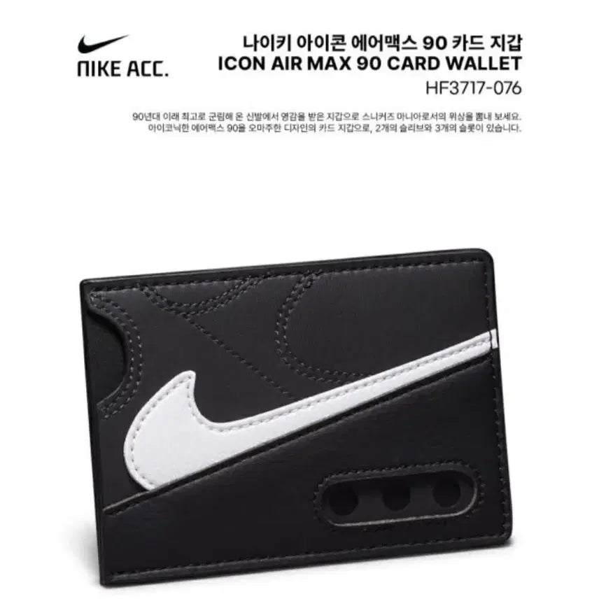 나이키 에어맥스 90 모티브 카드 지갑 새상품 3종입니다. 에어맥스 90 갑피 디자인을 그대로 가져온 카드 지갑입니다. 흰/검, 회/빨 검/흰 3가지 색상 있습니다. 문의 없으시면 바로 안전결제해주시면 됩니다!