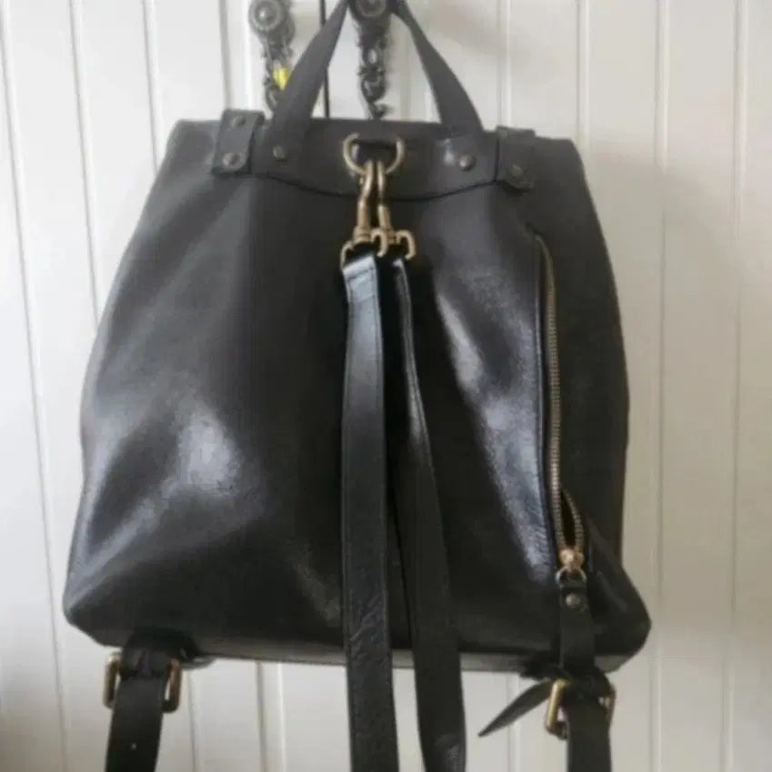 [BUNJANG] Black Leather Backpack / 블랙소가죽백팩