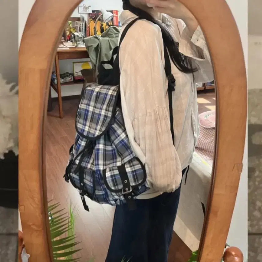 [BUNJANG] Vintage Blue Check Backpack / [vintage] 블루 체크 백팩
