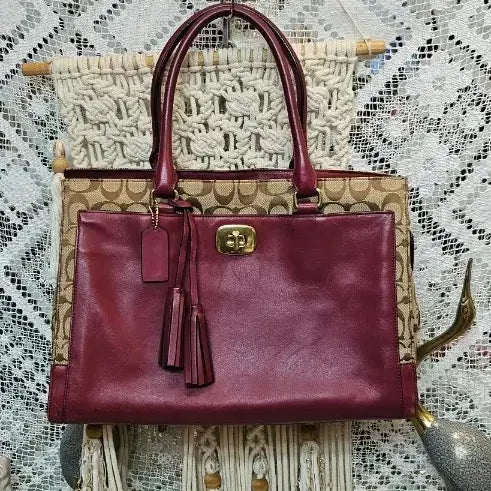 [BUNJANG] Coach Signature Leather Shoulder Bag - Burgundy / 코치 시그니처 가죽 숄더백버건디