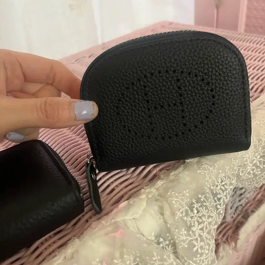 [BUNJANG] Black Leather Zip Card Wallet / 블랙 가죽 카드지갑 (지퍼형)