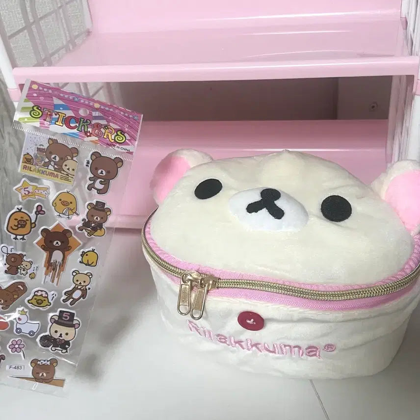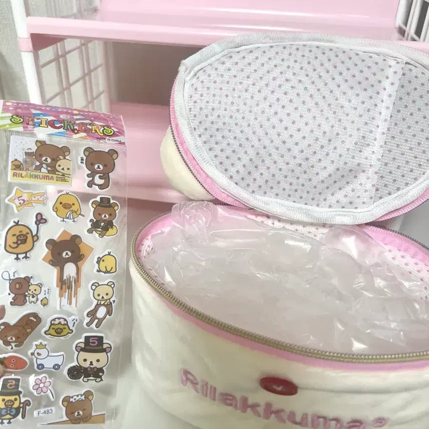 [BUNJANG] Rilakkuma Korilakkuma Dot Pattern Pouch Set / 리락쿠마 코리락쿠마 땡땡이 파우치 + 리락쿠마 스티커