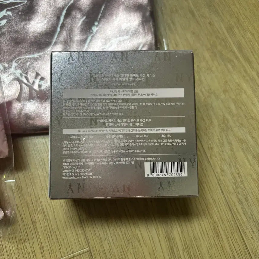 [BUNJANG] Banila Co. MLB New York Metallic Pink Edition Cushion Compact Set / 미개봉) 바닐라코 엠엘비 뉴욕 메탈릭 핑크 에디션 화이트 쿠션 파우치