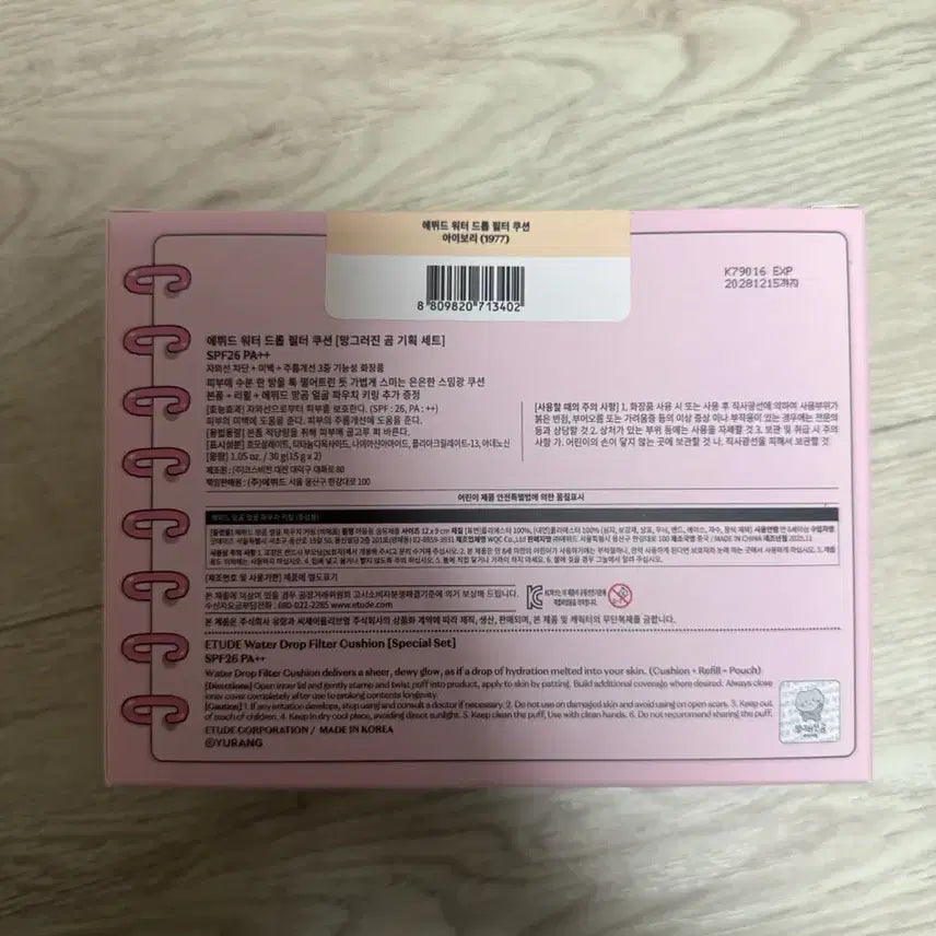 [BUNJANG] Etude Water Drop Filter Cushion (Mang-gwo-jin Bear Set) / 에뛰드 워터 드롭 필터 쿠션 (망그러진 곰 기획세트) 파우치 포함
