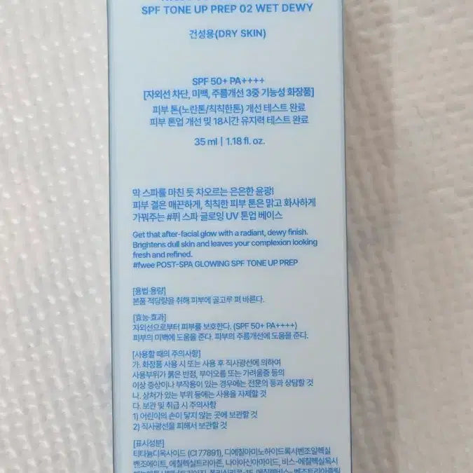 [BUNJANG] Fwee Spa Glowing UV Tone-Up Base 02 Dewy Finish for Dry Skin / 새상품)퓌 fwee 스파 글로잉 UV 톤업 베이스 02 물광 건성화잘먹