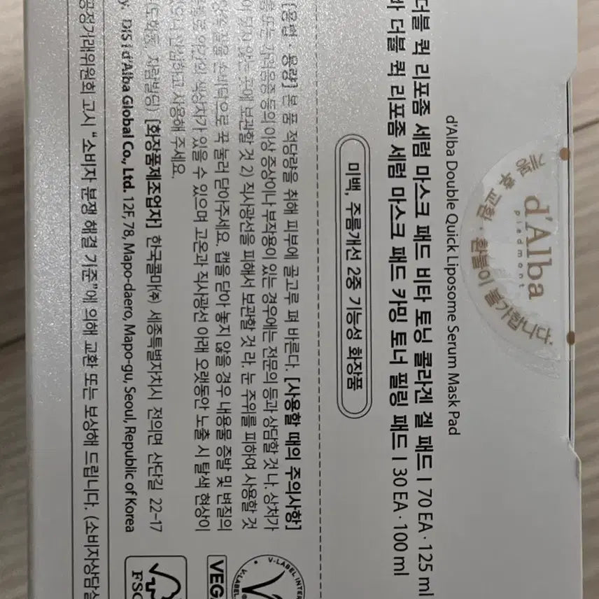 [BUNJANG] dalba Double Quick Liposome Calming & Boosting Half-Half Pad (100 Sheets) / 달바 더블 퀵 리포좀 카밍 패드 앤 부스팅 반반 패드 (100매)