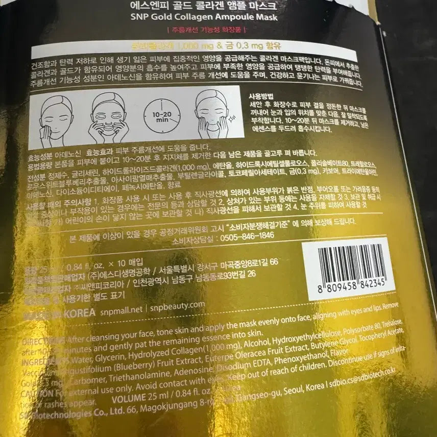 [BUNJANG] SNP Gold Collagen Ampoule Mask - 9 Sheets / SNP 골드 콜라겐 앰플 마스크 9장