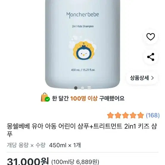 [BUNJANG] Mongshil Bebe 2-in-1 Kids Shampoo 450ml / 미개봉 새상품! 몽쉘베베 2in1 키즈 샴푸 450ml
