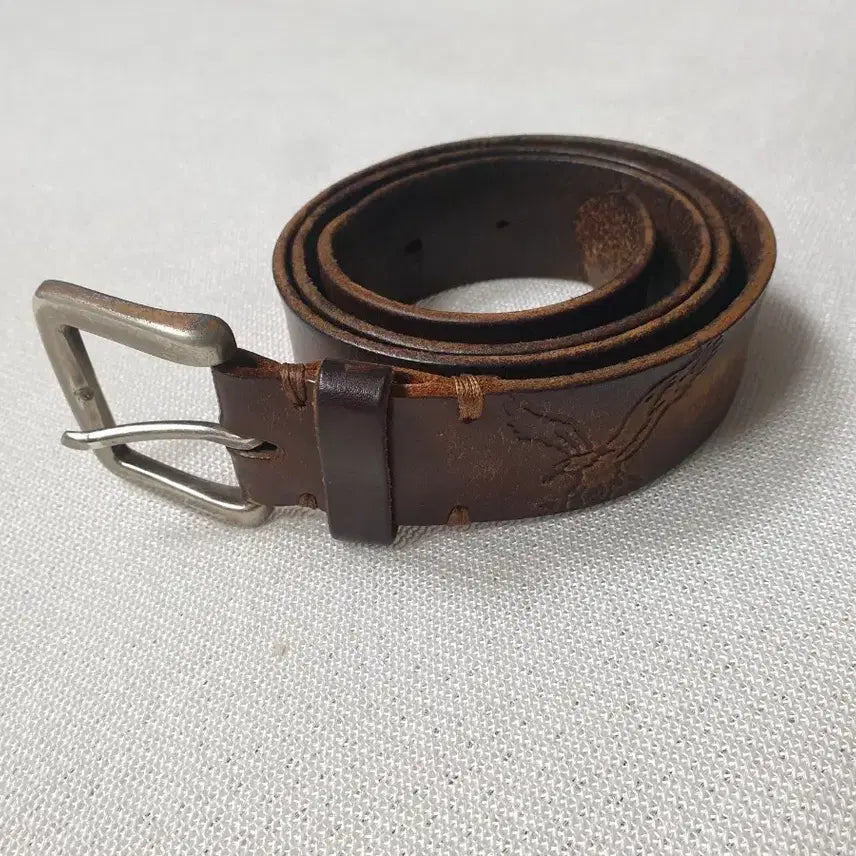 [BUNJANG] American Eagle Leather Belt / 아메리칸이글 가죽 벨트 브라운 독수리 문양 허리31~37