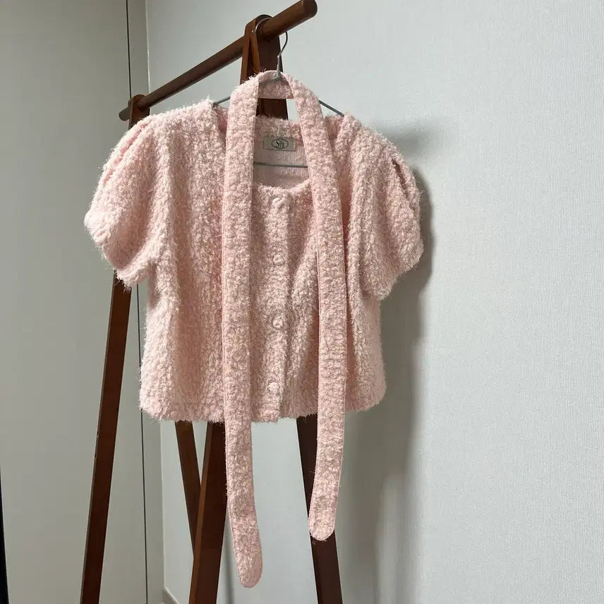 [BUNJANG] Pink Tie Short Sleeve Knit Top / 핑크 타이 반팔 니트