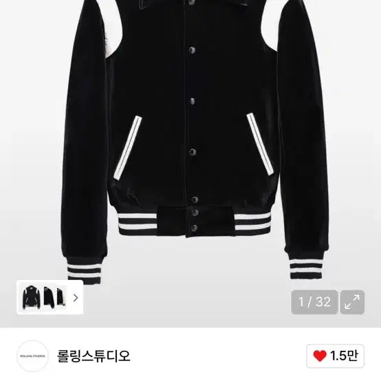 [BUNJANG] Rolling Studio Varsity Jacket Velvet Black (Size M) / 롤링스튜디오 바시티 자켓 벨벳 블랙 M사이즈