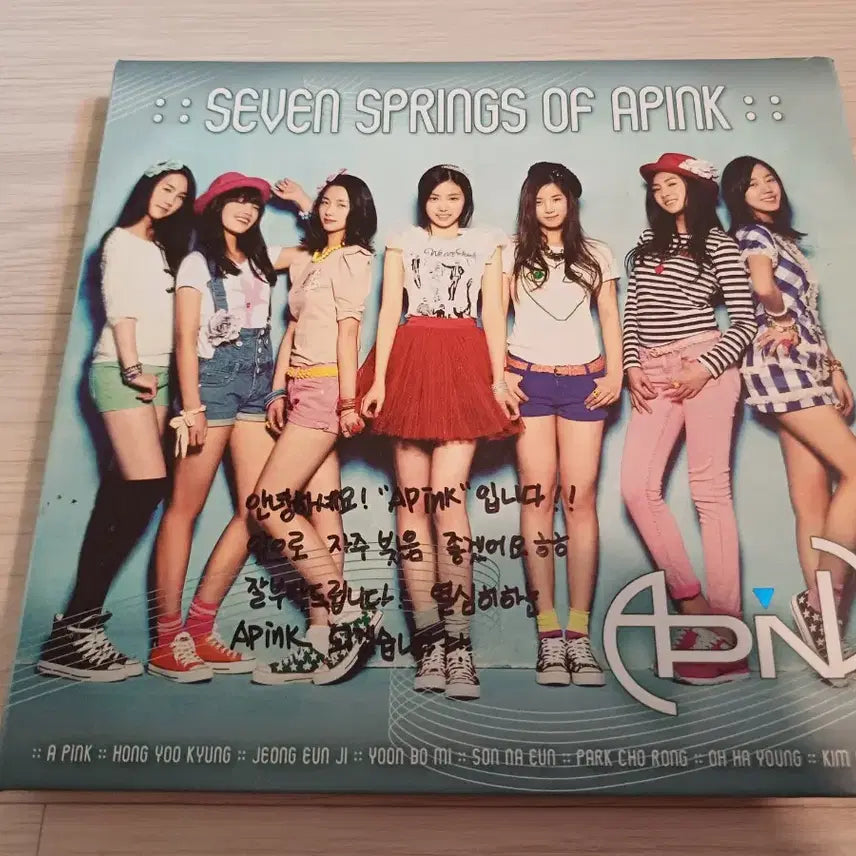 내년 15주년 활동을 예고한 에이핑크 무려 데뷔앨범입니다. 표지엔 메시지를 적고 개별 사진에 싸인을 했습니다~ 상태 깨끗합니다~~