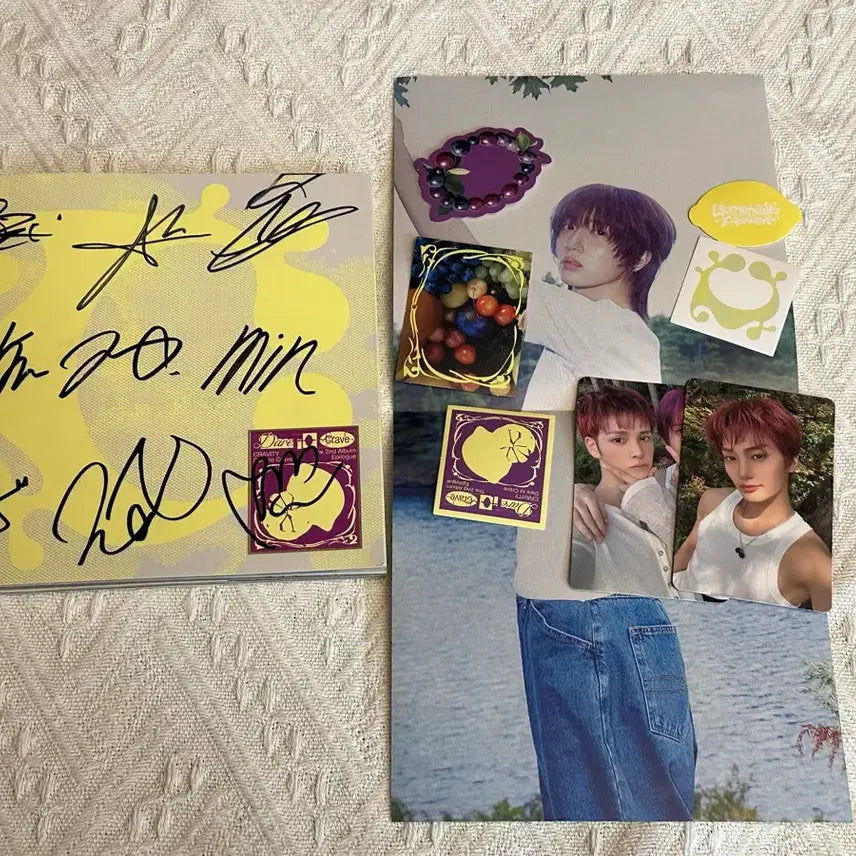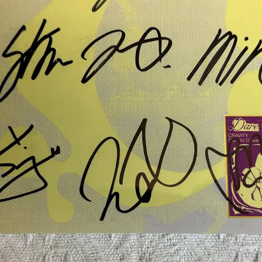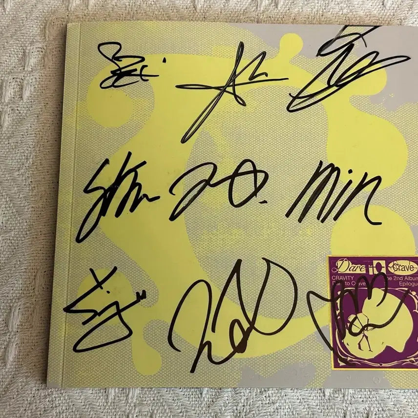 크래비티 친필 싸인 앨범 판매합니다. Dare to Crave 앨범에 멤버들의 친필 싸인이 있습니다. 소장 가치 있는 음반이니 팬분들께 추천드려요! 문의 없으시면 바로 안전결제해주시면 됩니다!