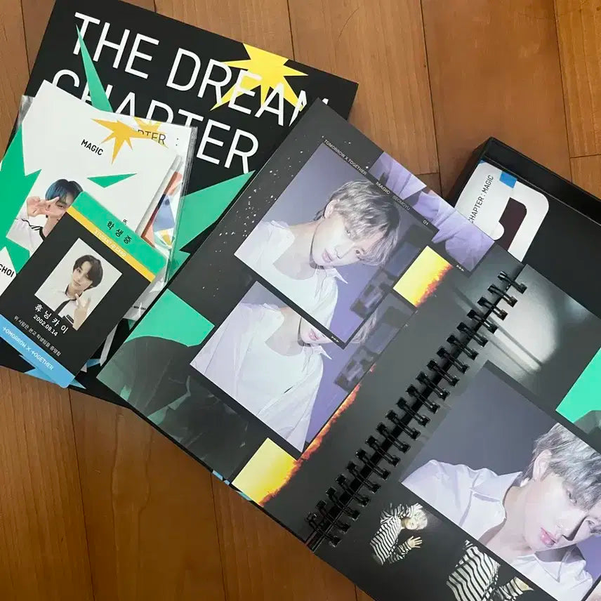 투바투 정규1집 꿈의장 앨범 판매합니다 개봉만 했고 새상품이에용 휴닝카이 학생증 포카, 3d 안경, 스티커, cd 모두 포함입니당