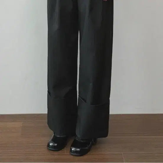 [BUNJANG] MICANE Zelda Roll-up Wide Pants - Black / 미케네팬츠/ MICANE 젤다 롤업 와이드 팬츠 블랙