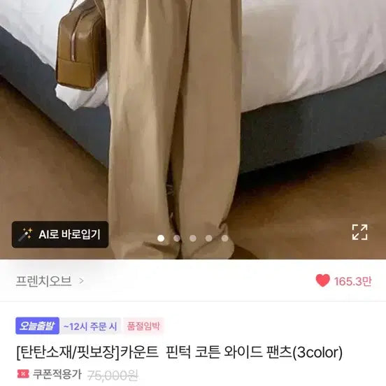 [BUNJANG] French of Pinstuck Cotton Wide Pants Beige S / 프렌치오브 핀턱 코튼 와이드 팬츠 베이지 S 에이블리 지그재그