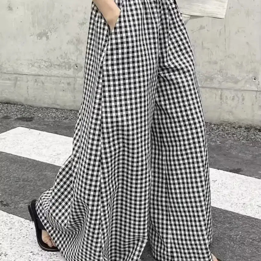 [BUNJANG] Dinto Check Wide Long Pants M / 딘트 깅엄 체크 팔라초 팬츠M