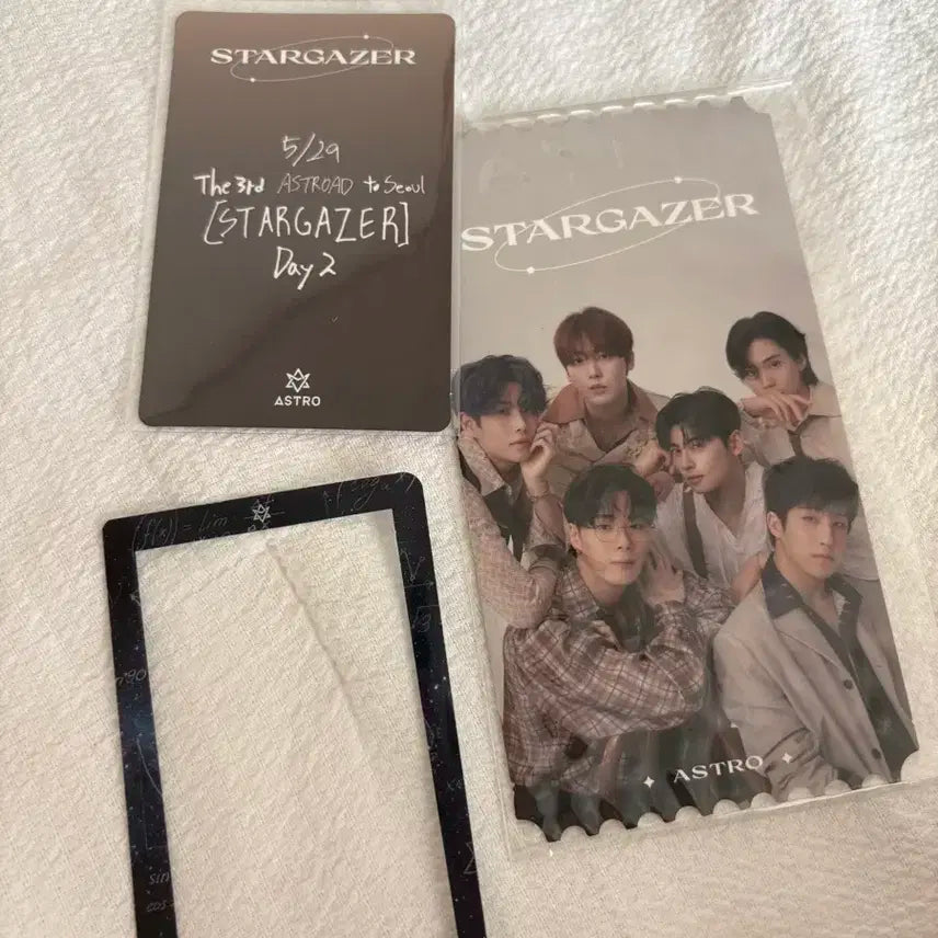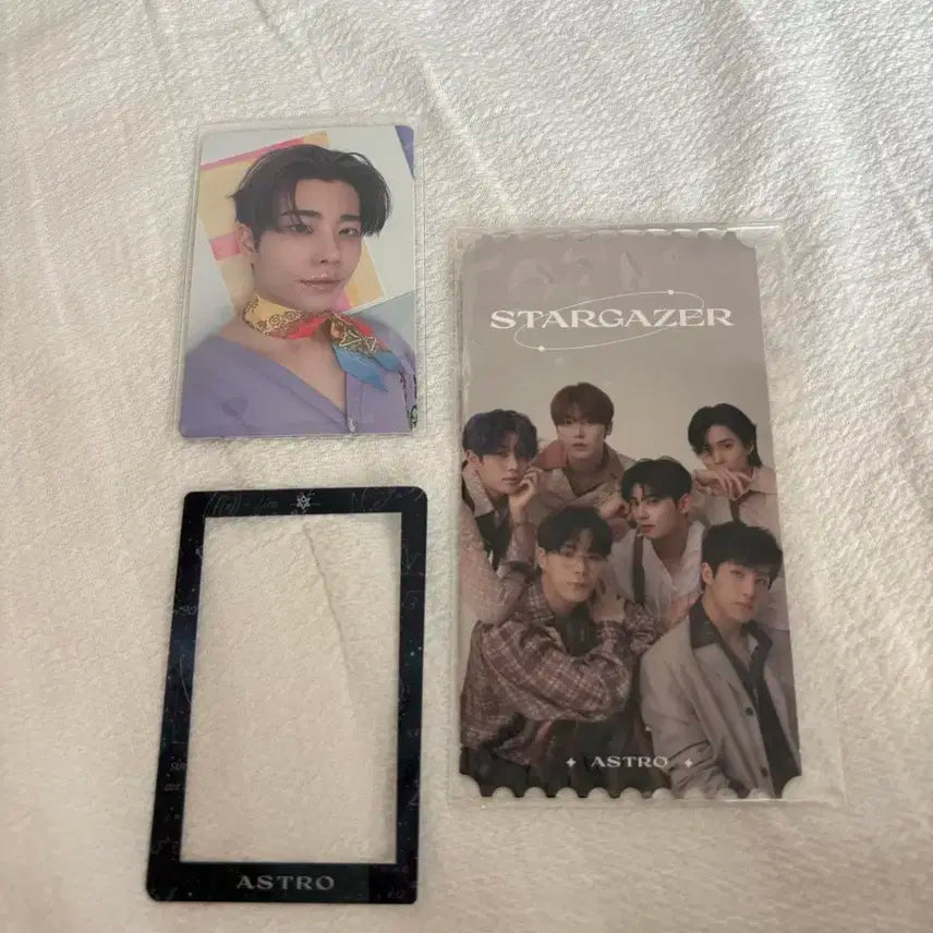 막콘 퇴장 포카+스타게이저 포토티켓1장+아스트로 공식 포카 프레임 엠제이 포카는 opp필름에 넣어 보관해서 상태 좋습니다 일괄로만 팔아요 배송비별도