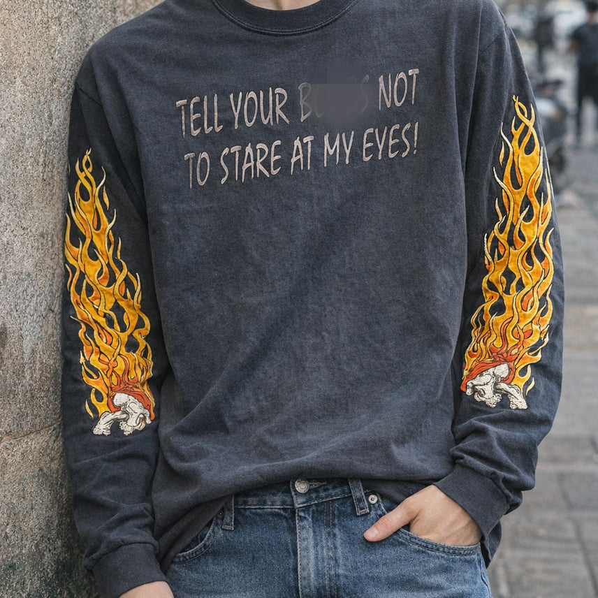 [BUNJANG] 00's [M] Vintage Long Sleeve Biker Flame Skull Graphic Washed Chopper / 00's [M] 빈티지 롱슬리브 바이커 플레임 스컬 그래픽 워싱 쵸퍼
