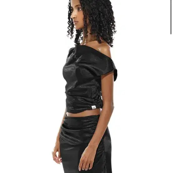 이투둘 222 TOP 014 새틴 탑입니다. 드레이핑 디자인이 유니크하고 세련된 느낌을 줍니다. 블랙 색상으로 어떤 스타일에도 잘 어울립니다.