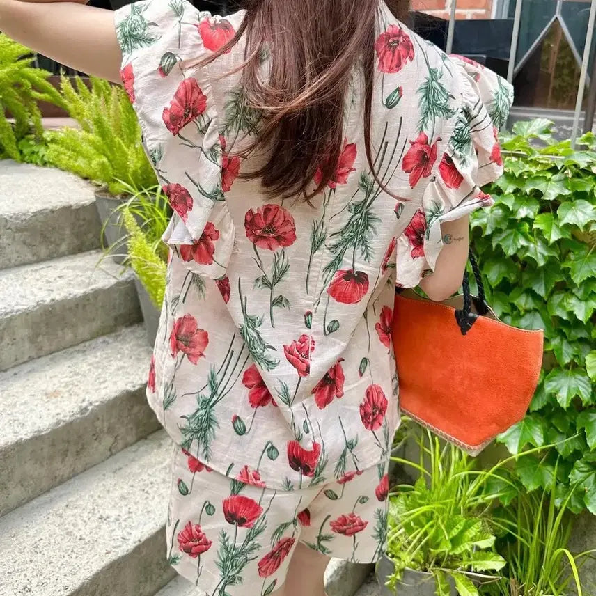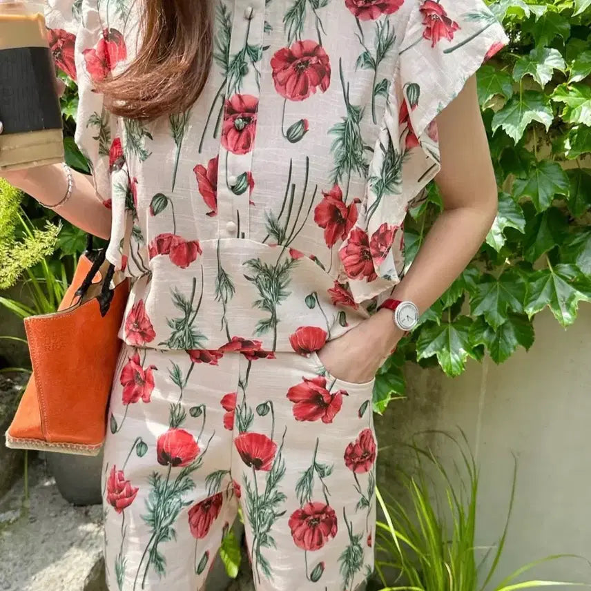 에이싸인바이수 플로라 셋업 새상품 판매합니다. 화사한 플로라 패턴이 돋보이는 셋업으로, 상의는 반팔 블라우스 형태이고 하의는 반바지입니다. 고급스러운 디자인으로, 격식 있는 자리에도 잘 어울립니다. 문의 없으시면 바로 안전결제해주시면 됩니다!