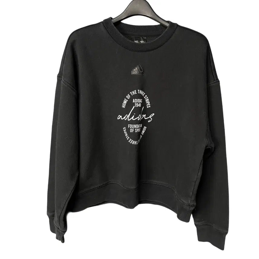 [BUNJANG] Adidas Women's Black Printed Crop Sweatshirt / M 아디다스 여성 블랙 프린팅 크롭 맨투맨