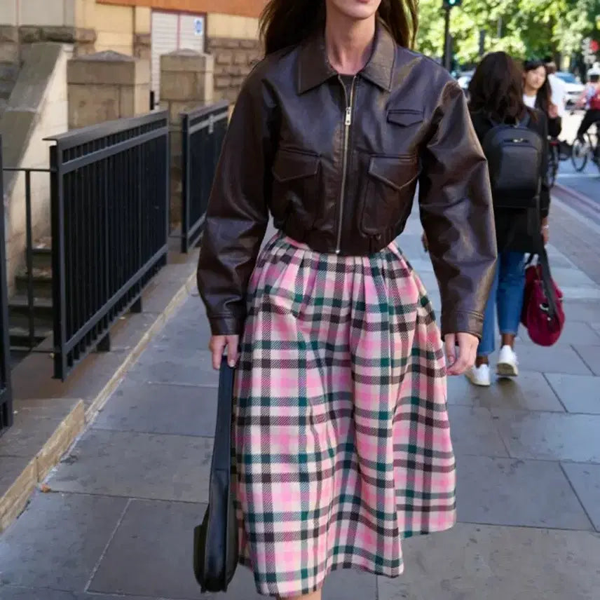 BOROMWAT Flared skirt (Pink check)