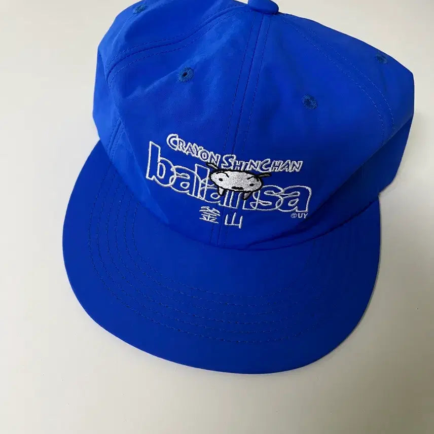 This is a Crayon Shin-chan collaboration Balansa snapback hat. The white embroidered logo on a blue background is a focal point. It's unique and striking, making it instantly eye-catching. If you have any questions, you can simply pay securely!