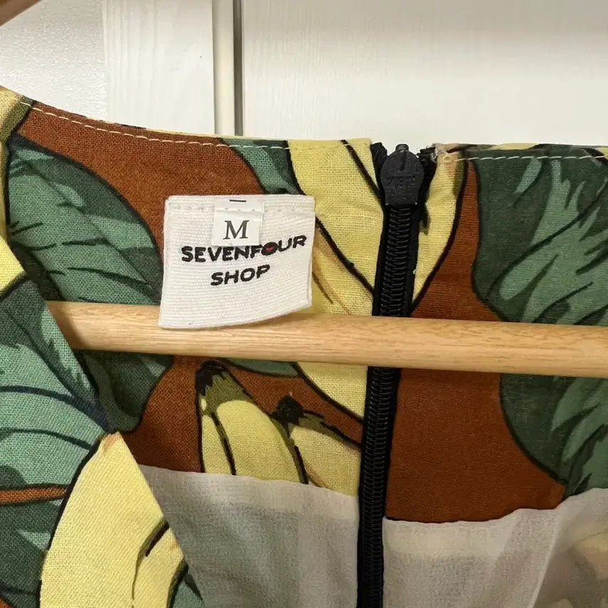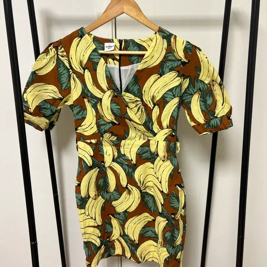 갈색 바탕에 바나나 프린팅이 돋보이는 반팔 미니 원피스입니다. 독특한 패턴으로 시원하고 발랄한 느낌을 줍니다. 문의 없으시면 바로 안전결제해주시면 됩니다!