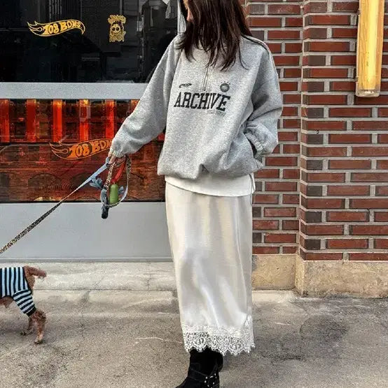 브론즈부부 마드모아젤 롱 스커트 S사이즈입니다. 은은한 광택이 도는 재질이라 고급스러워 보입니다. 밑단 레이스 디테일로 포인트를 준 디자인입니다. 별도 문의 없으시면 바로 안전결제 부탁드려요!