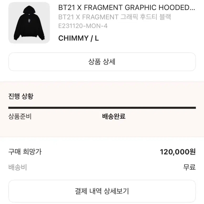 [BUNJANG] BT21 CHIMMY Fragment Graphic Hoodie / [L] BT21 X Fragment 그래픽 후드티 CHIMMY