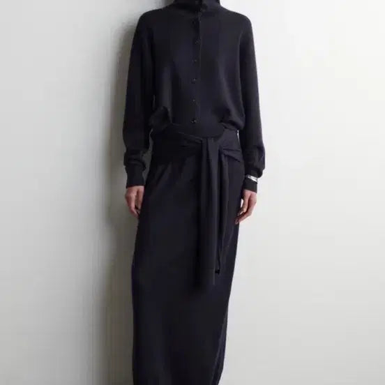 [SOLD OUT] COS 코스 타이 웨이스트 메리노 울미디 스커트 네이비 xs