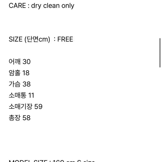FREE 사이즈이며, 상세 사이즈는 다음과 같습니다