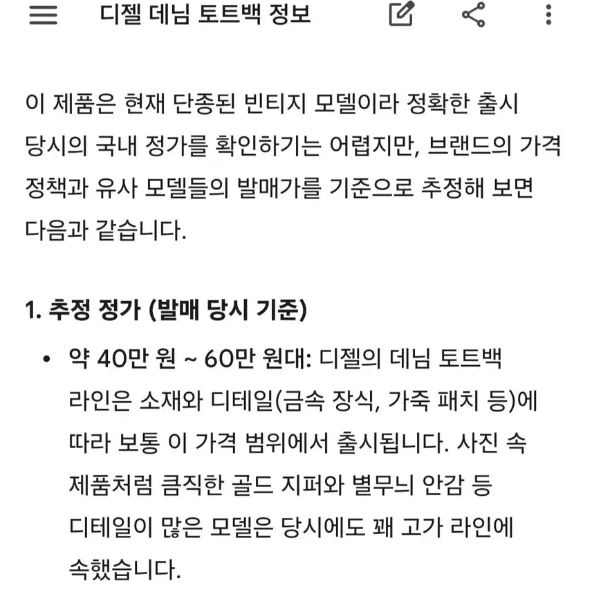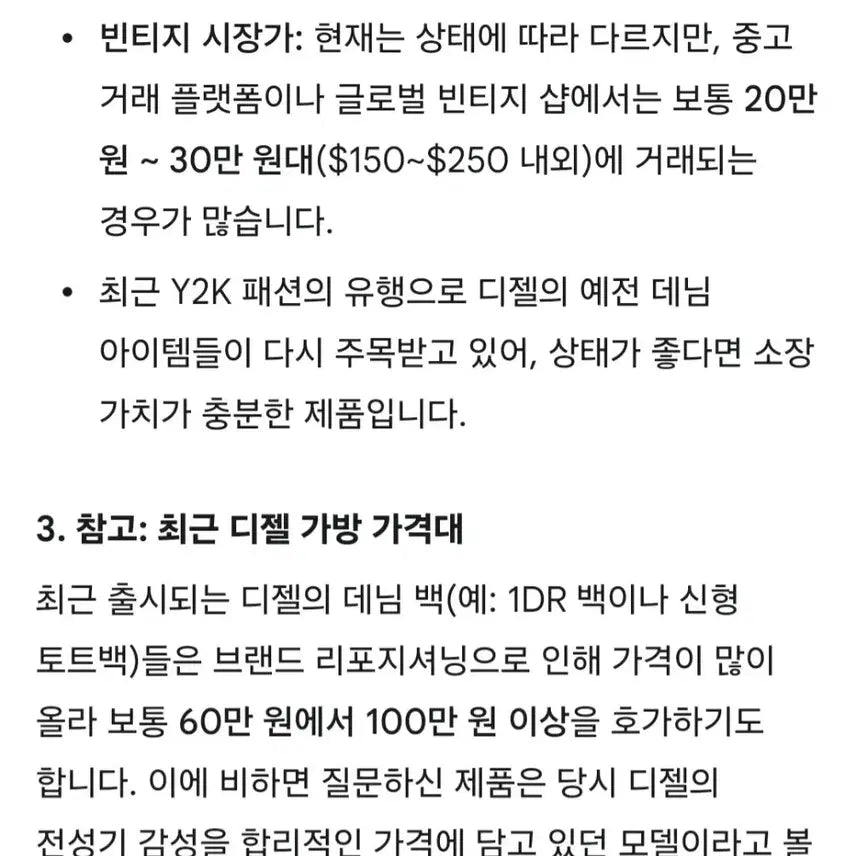 디젤의 'Divina' 라인이나 과거 빈티지 데님 백 시리즈들과 유사한 디자인으로,
