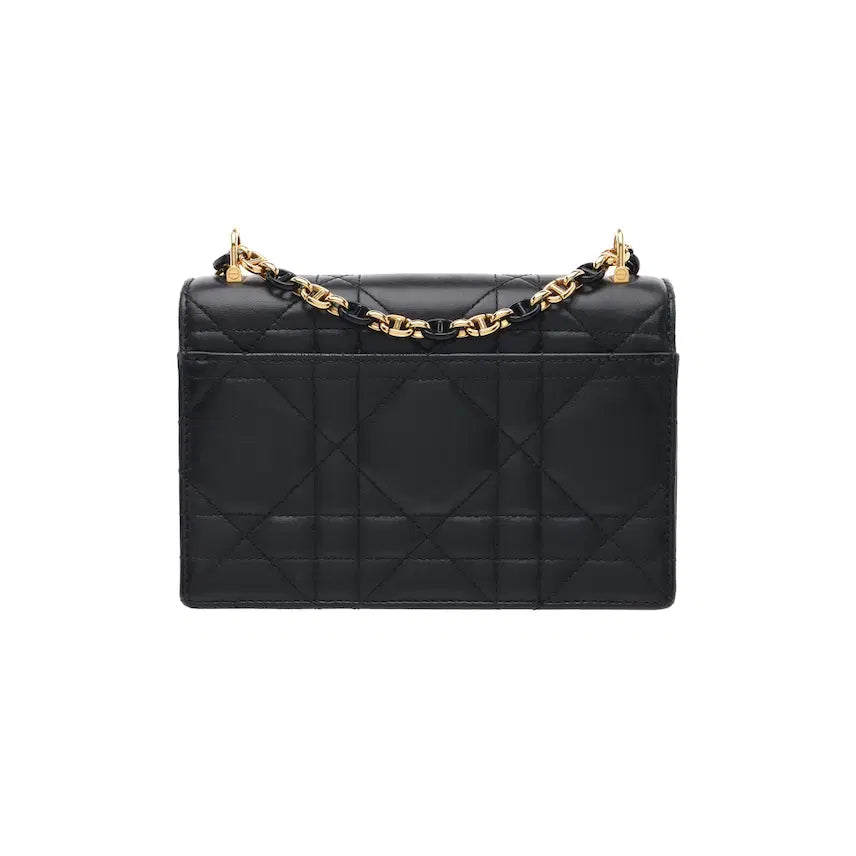 디올의 우아함과 현대적인 감각이 조화를 이룬 미스 카로 미니백은 부드럽고 유연한 양가죽 위에 상징적인 까나쥬 스티칭을 더해 입체적인 볼륨감과 섬세한 질감을 극대화한 모델입니다. 시크한 블랙 컬러 레더와 대조를 이루는 골드 톤의 CD 로고 잠금장치가 전면에 배치되어, 디올만의 럭셔리한 정체성을 명확하게 드러냅니다.