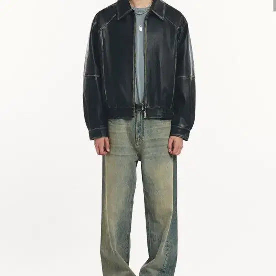 [BUNJANG] Dope Jayson Washing Leather Blouson Jacket M / 도프제이슨 워싱 레더 블루종 자켓 M