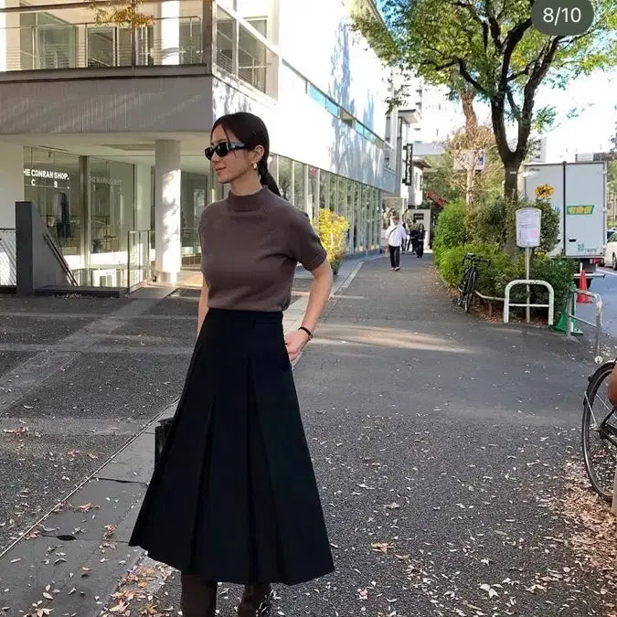 Khan Inverted Pleat Skirt (Black)