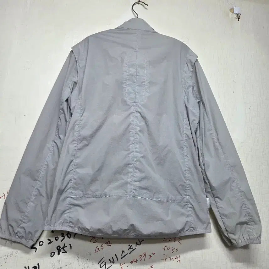회색 남성 바람막이 자켓입니다. 얇은 재질이라 간절기에 가볍게 걸치기 좋아요. 전체적으로 깔끔한 디자인이라 어디든 잘 어울립니다. 별도 문의 없으시면 바로 안전결제 부탁드려요!