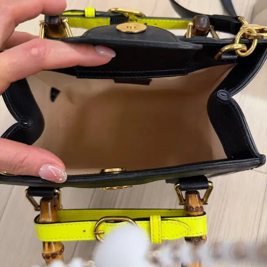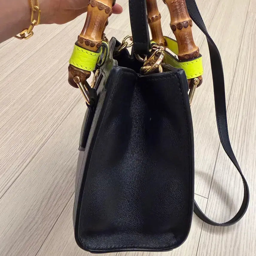 블랙 색상에 대나무 핸들이 포인트인 가방이에요